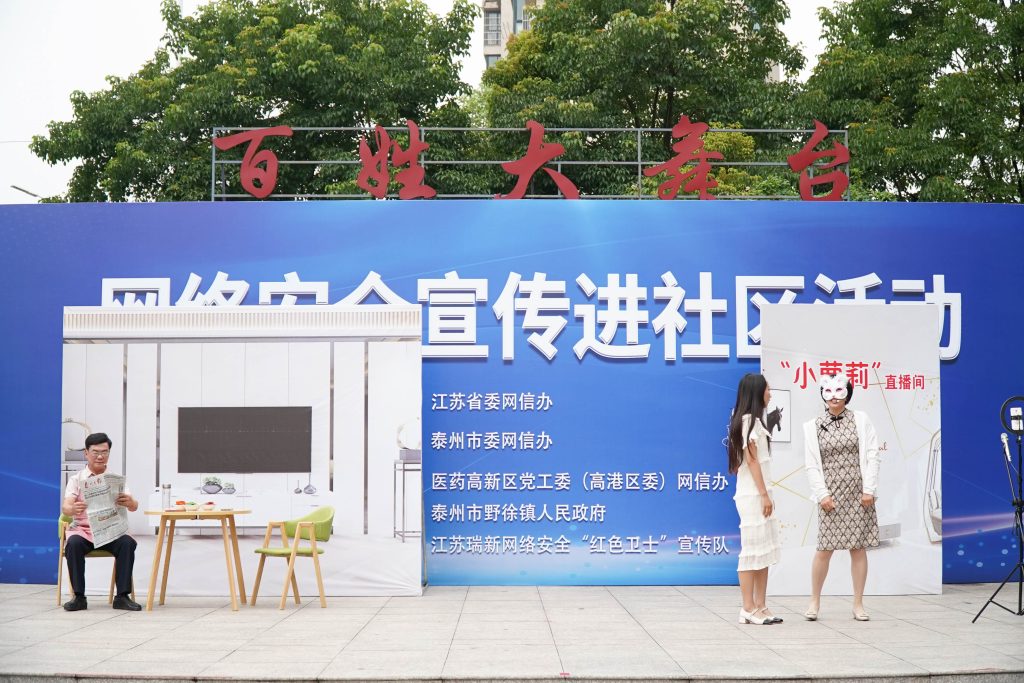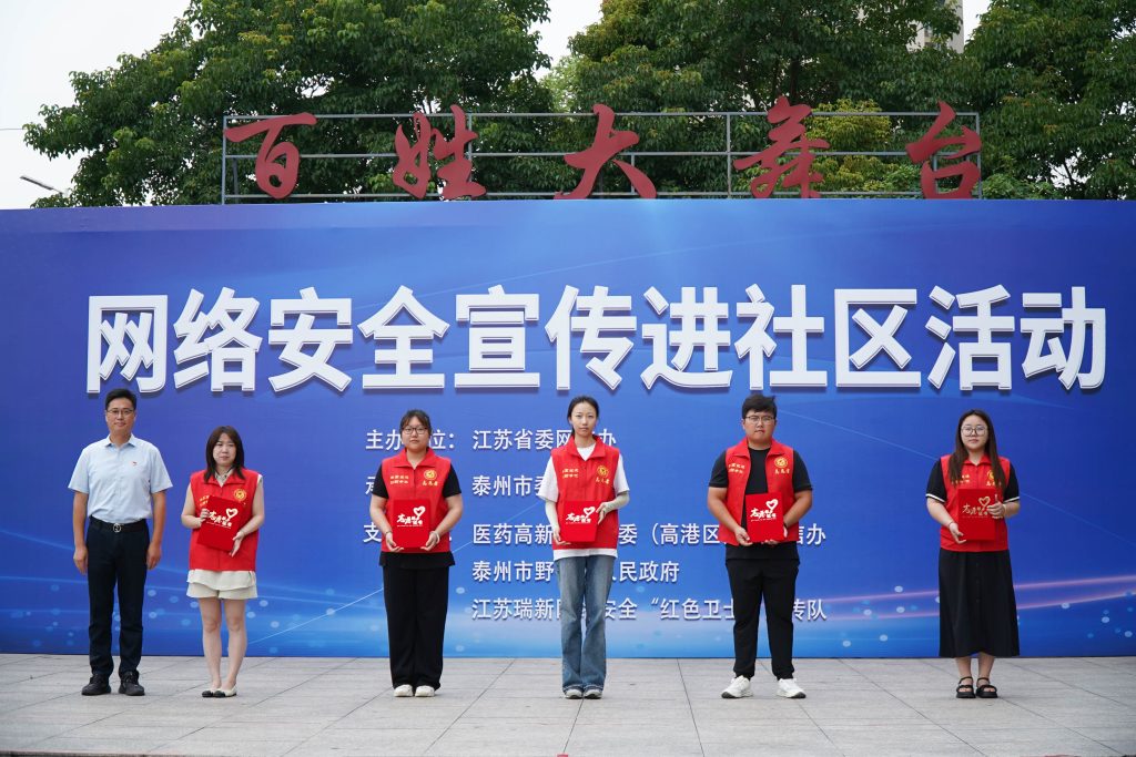 ? 為深入學(xué)習(xí)宣傳貫徹習(xí)近平總書(shū)記關(guān)于網(wǎng)絡(luò)強(qiáng)國(guó)的重要思想,大力營(yíng)造網(wǎng)絡(luò)安全人人參與、人人有責(zé)、人人共享的濃厚氛圍,全面推進(jìn)網(wǎng)絡(luò)安全進(jìn)社區(qū)活動(dòng),提升廣大群眾網(wǎng)絡(luò)安全防護(hù)意識(shí)和能力,6月25日上午,全省網(wǎng)絡(luò)安全常態(tài)化宣傳第三站活動(dòng)在泰州舉行。此次活動(dòng)由江蘇省委網(wǎng)信辦主辦,泰州市委網(wǎng)信辦承辦,醫(yī)藥高新區(qū)黨工委(高港區(qū)委)網(wǎng)信辦、泰州市野徐鎮(zhèn)人民政府和江蘇瑞新網(wǎng)絡(luò)安全“紅色衛(wèi)士”宣傳隊(duì)等多家單位協(xié)辦。